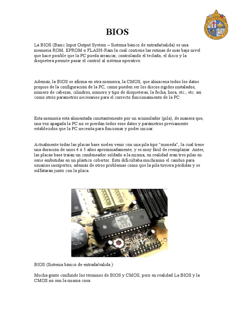 La BIOS (Basic Input Output System – Sistema básico de entrada/salida) es una