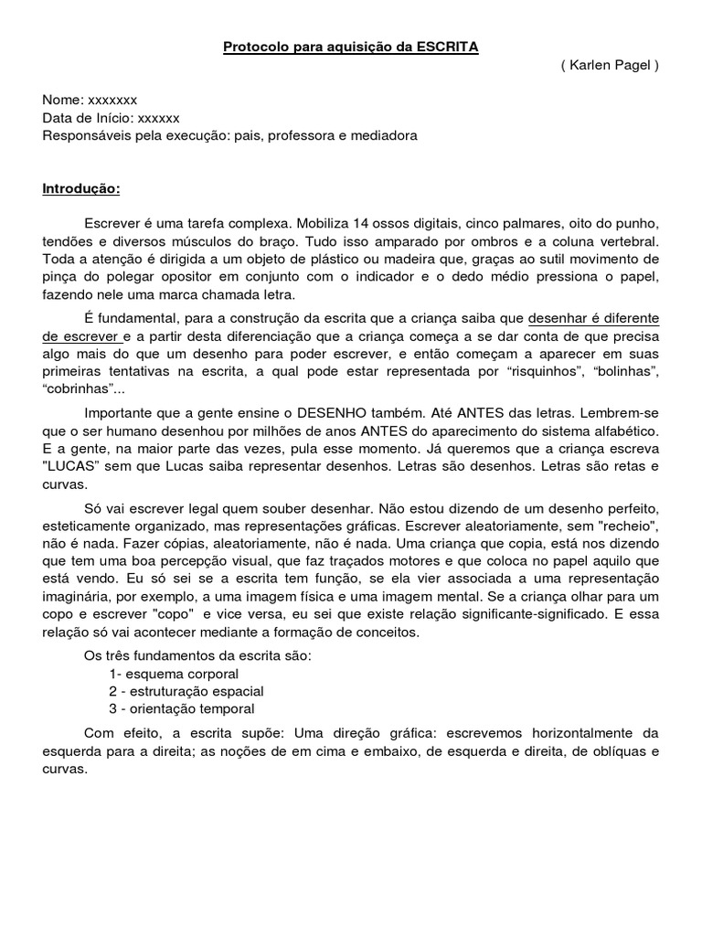 Protocolo para aquisição da ESCRITA