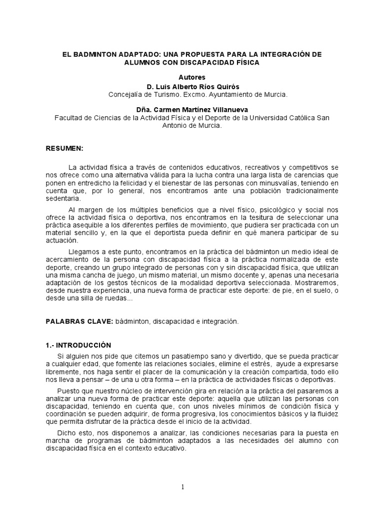 PALABRAS CLAVE: bádminton, discapacidad e integración.