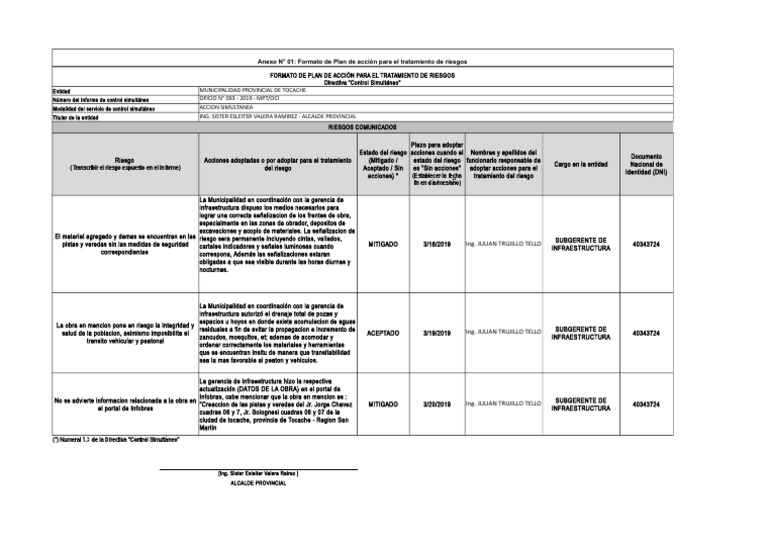 Anexo N° 01: Formato de Plan de acción para el tratamiento de riesgos