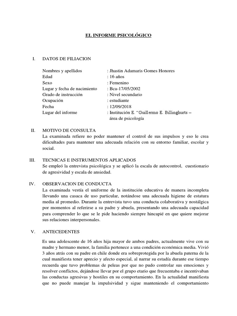 de autocontrol y ansiedad leve. Presentando conductas hostiles, agresivas indirectas y