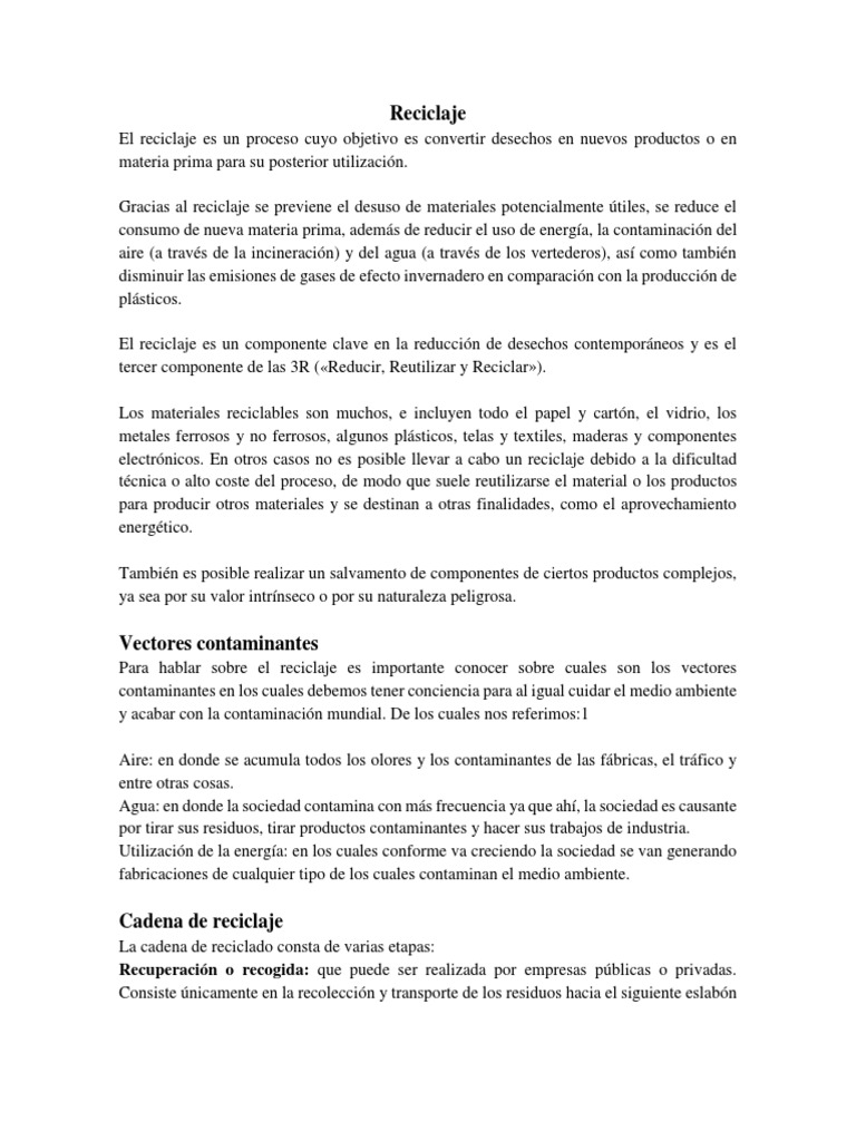 El reciclaje es un proceso cuyo objetivo es convertir desechos en nuevos productos o en
