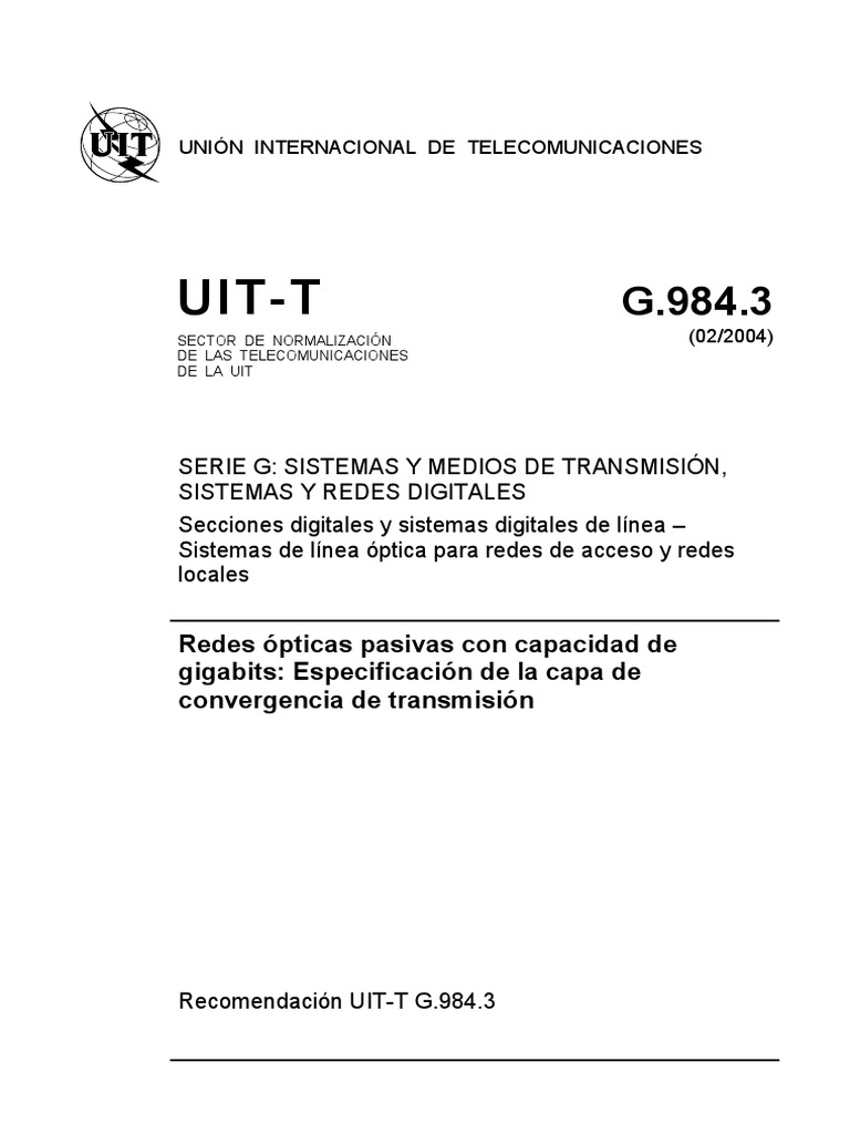 Esta Recomendación forma parte integrante de la serie de Recomendaciones UIT-T G.984 que