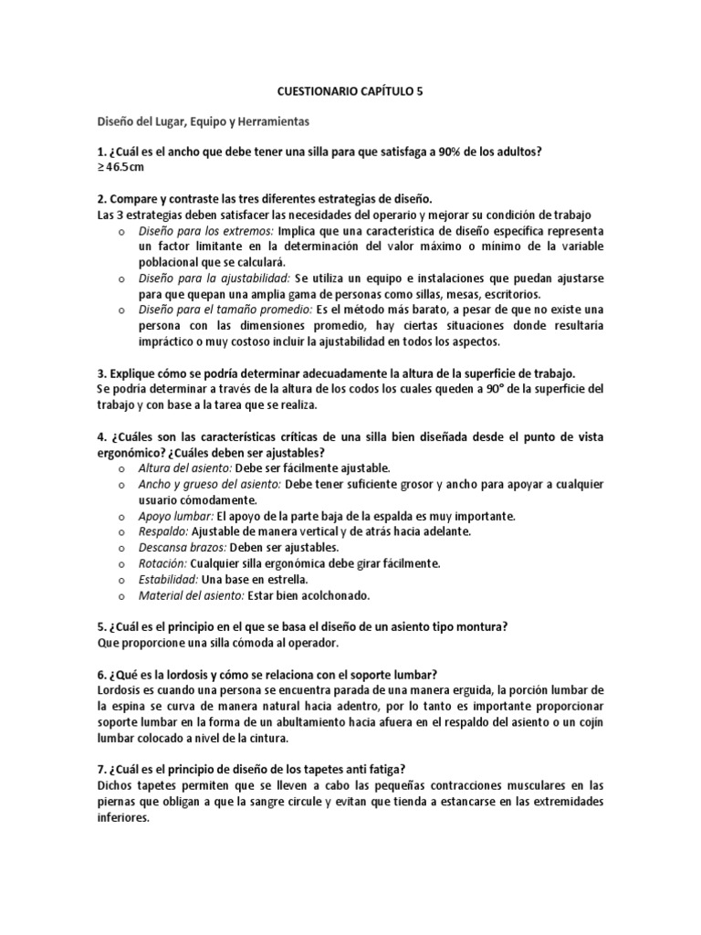 4. ¿Cuáles son las características críticas de una silla bien diseñada desde el punto de vista