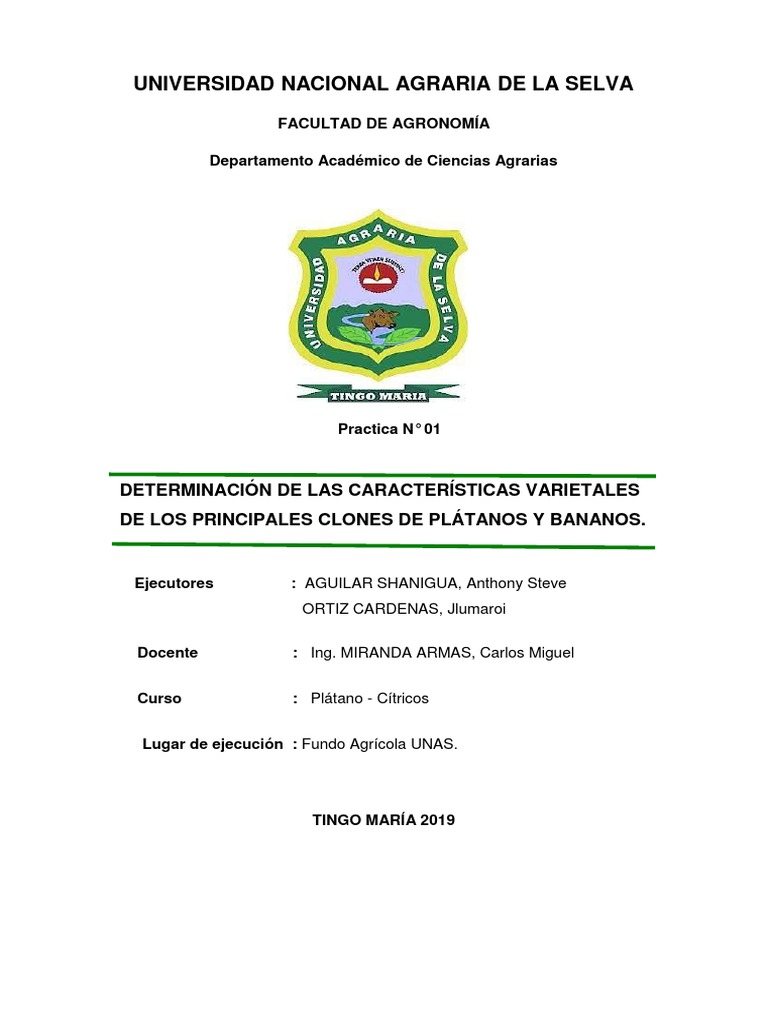 plátano y banano que había en el fundo de la UNAS, así como sus características