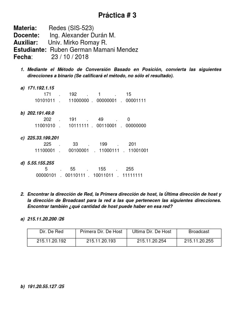 direcciones a binario (Se calificará el método, no sólo el resultado).