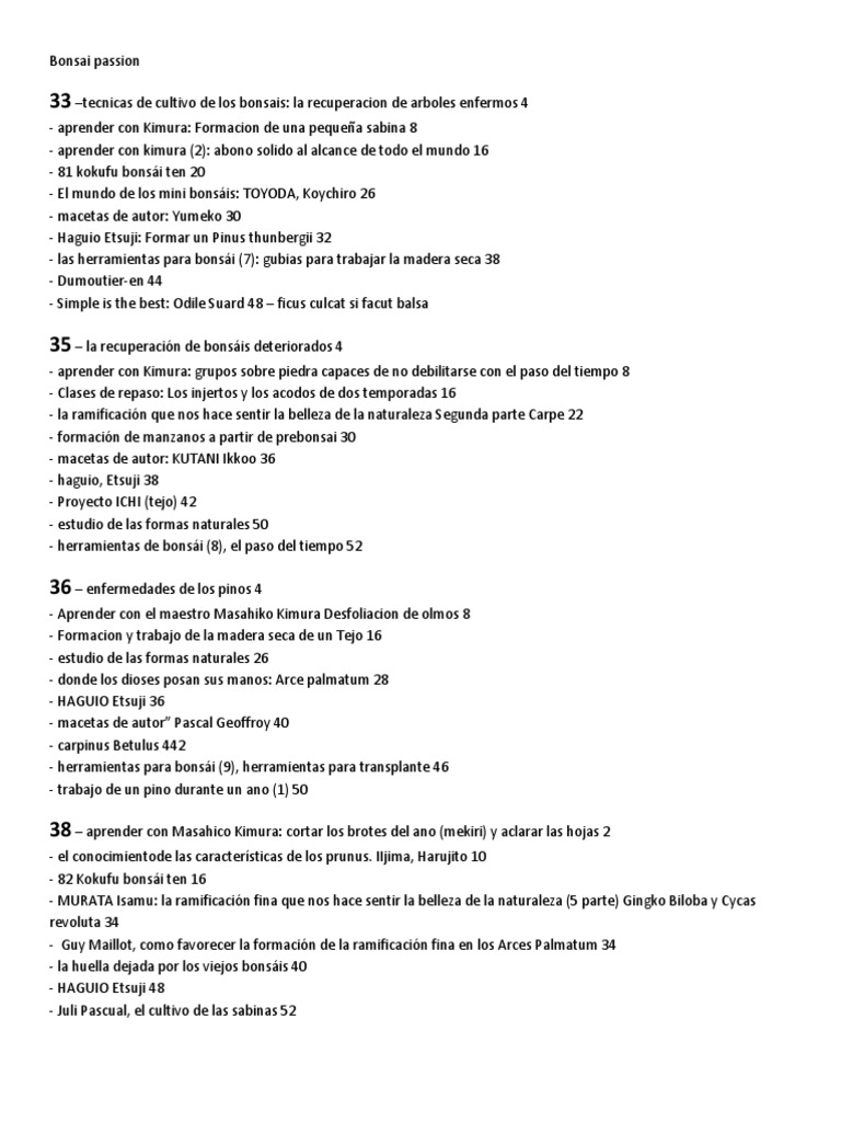- trabajo de la madera seca 33/ por que trabajamos la madera seca de los bonsáis? 34/ la técnica original japonesa 36/
