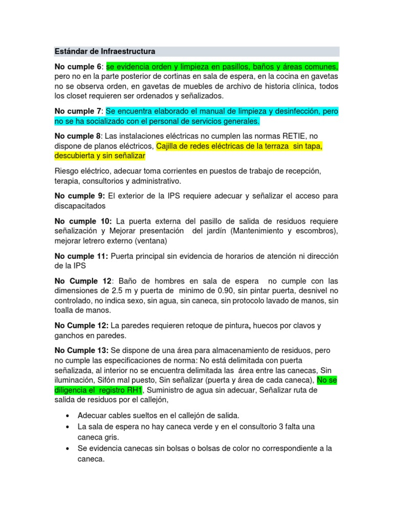 No cumple 6: se evidencia orden y limpieza en pasillos, baños y áreas comunes,
