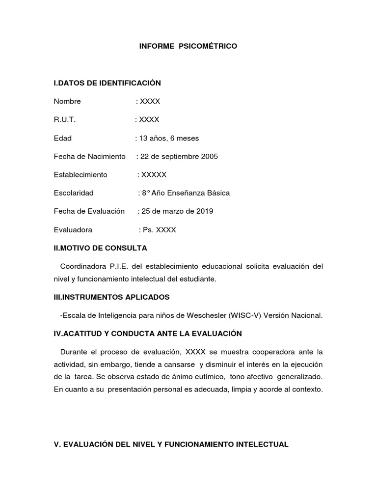 V. EVALUACIÓN DEL NIVEL Y FUNCIONAMIENTO INTELECTUAL