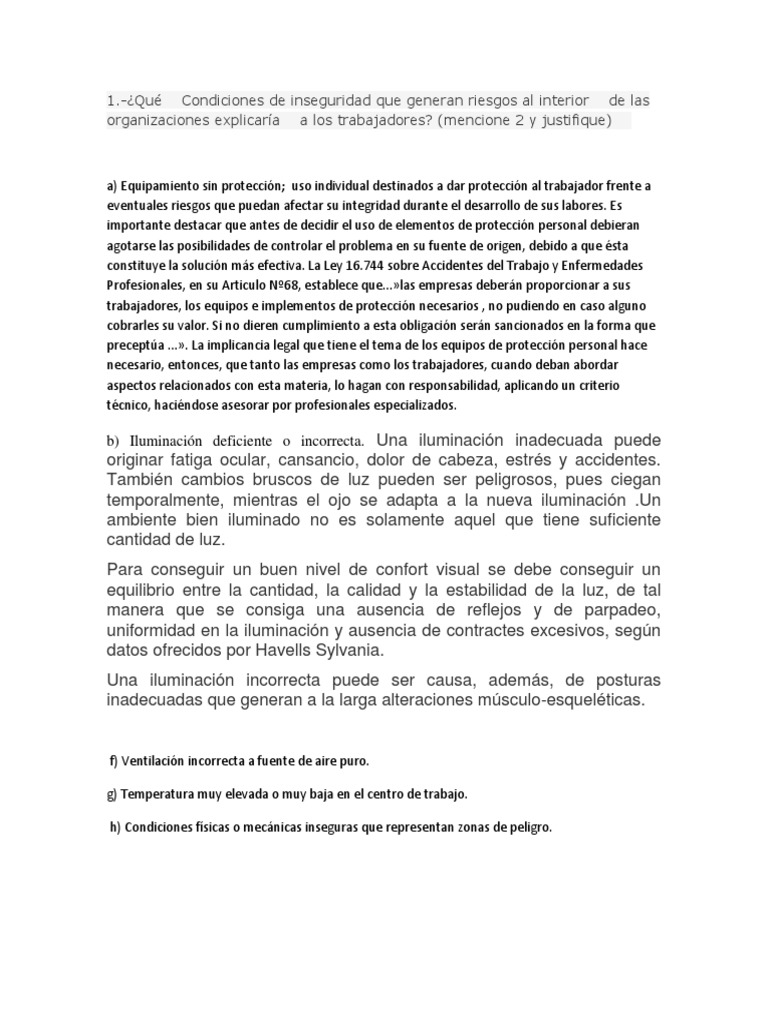 Considere normativas vigentes de seguridad y leyes laborales.