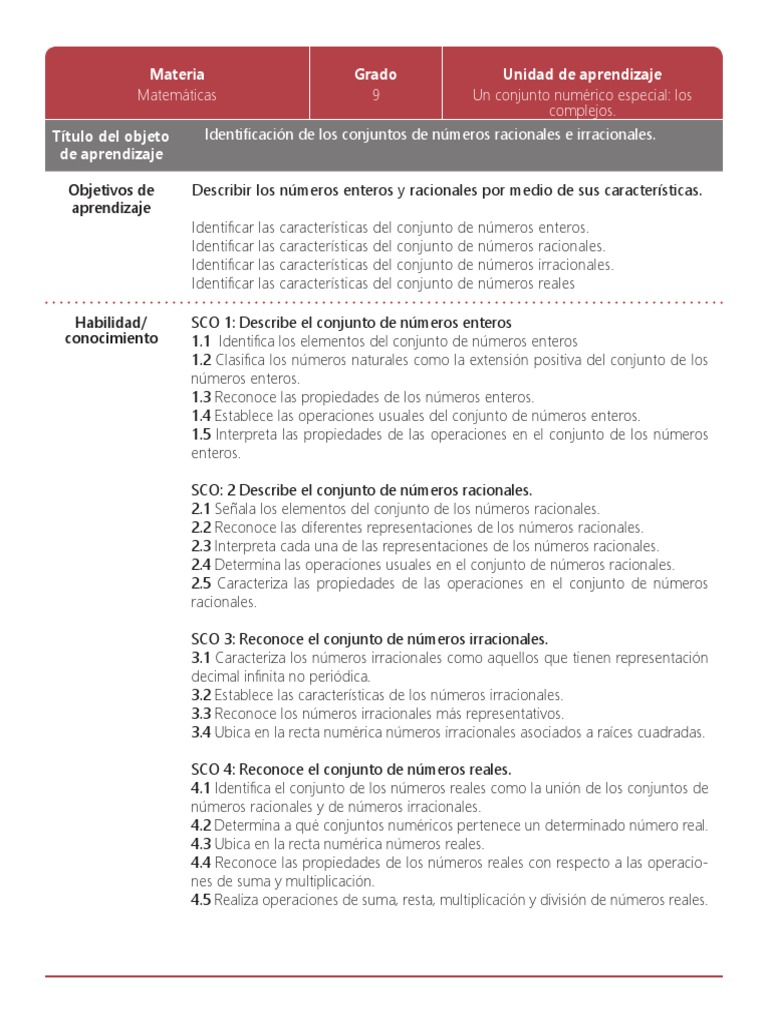 Título del objeto Identificación de los conjuntos de números racionales e irracionales.