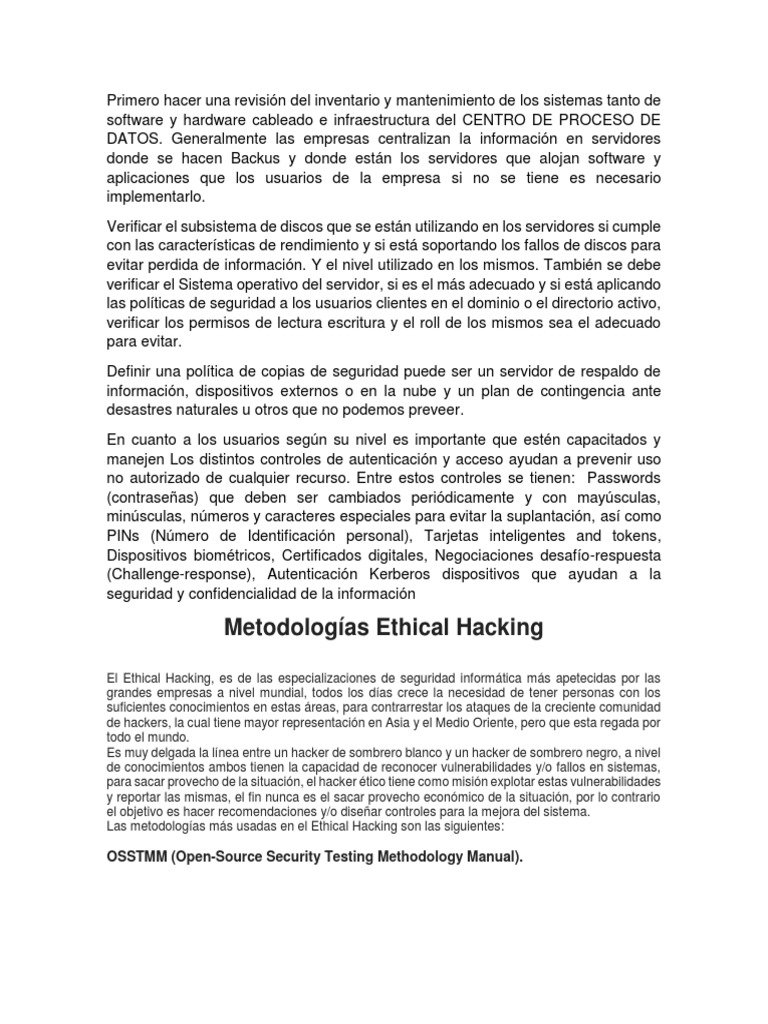 destinadas a proteger la información; uno de esos servicios lo constituye el Ethical hacking,