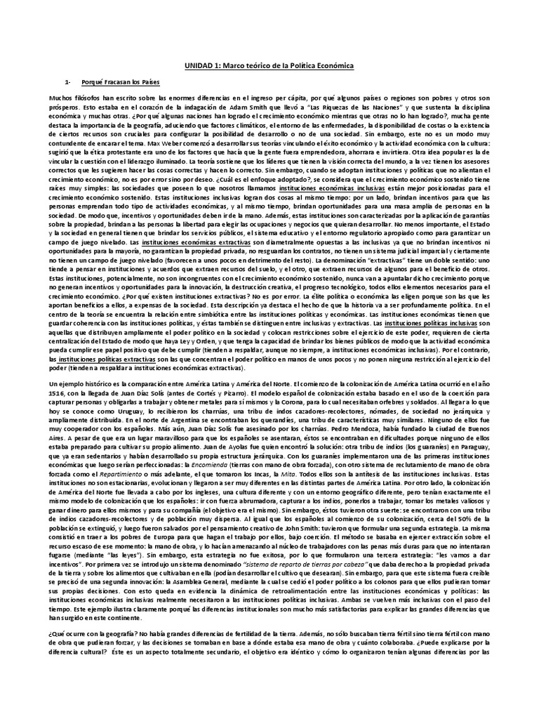 instituciones económicas extractivas, lo que comúnmente se denomina “crecimiento extractivo” (lo cual sucede cuando el crecimiento es congruente