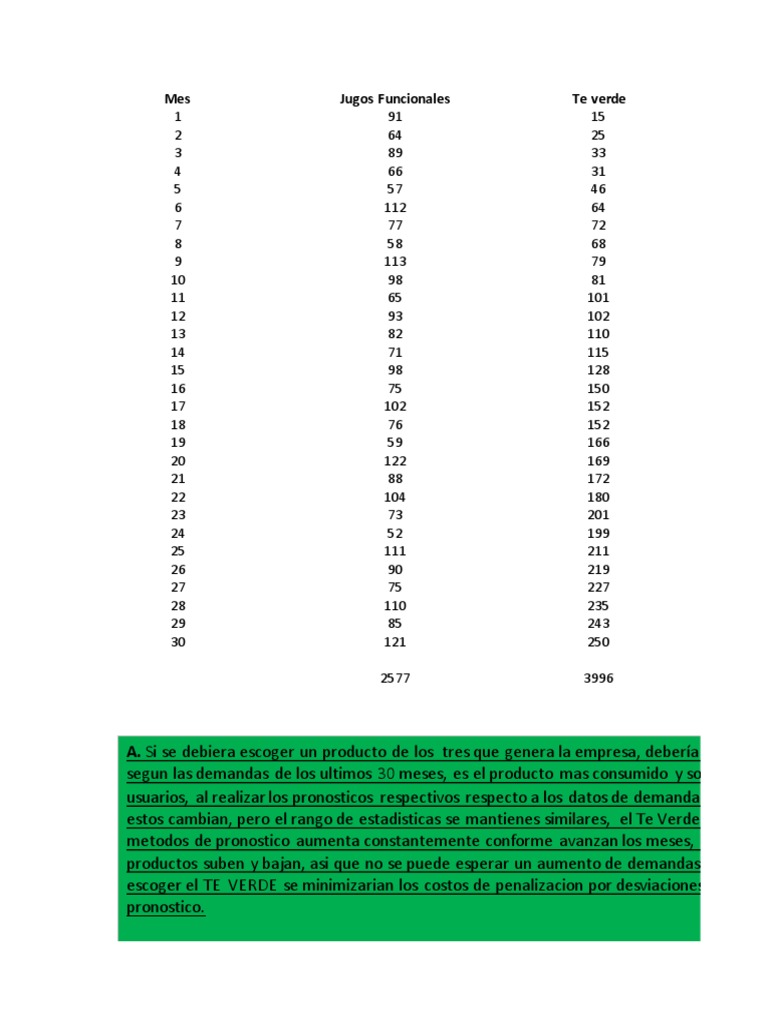 Podemos concluir que el Producto que deberia elegir la empresa seria el TE VERDE,