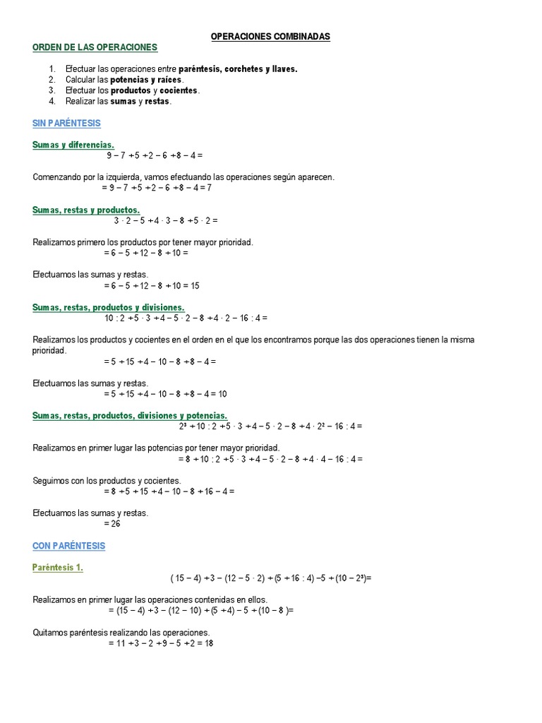 1. Efectuar las operaciones entre paréntesis, corchetes y llaves.