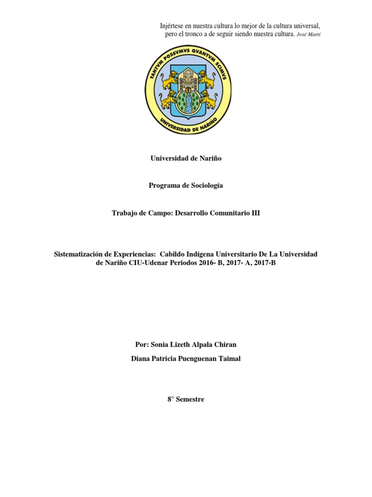 El proceso de constitución del Cabildo Indígena Universitario universidad de Nariño CIU-