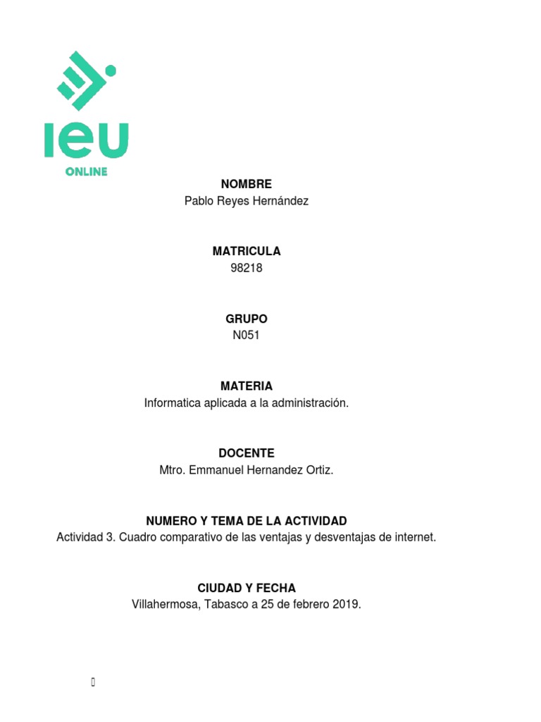 Actividad 3. Cuadro comparativo de las ventajas y desventajas de internet.