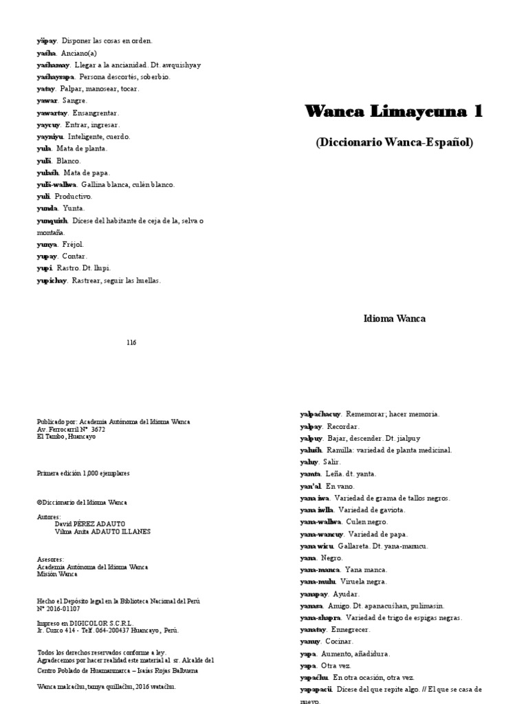 (Diccionario Wanca-Español)