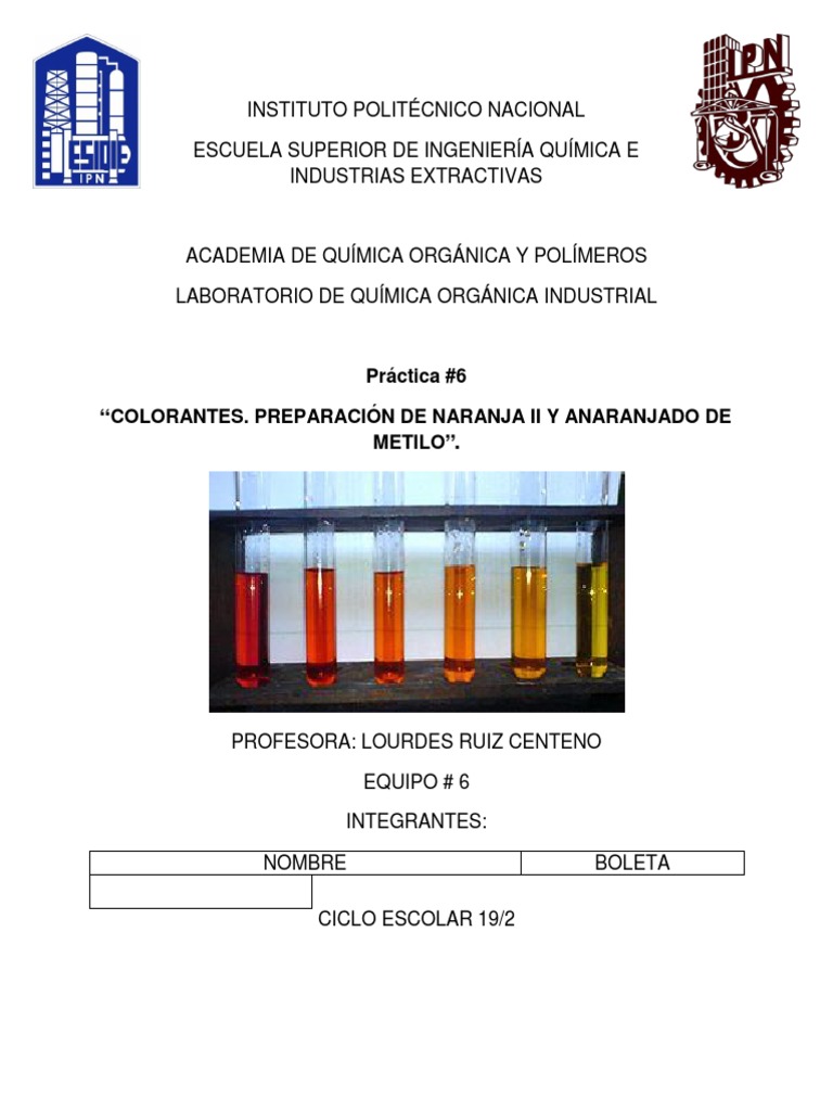 “COLORANTES. PREPARACIÓN DE NARANJA II Y ANARANJADO DE