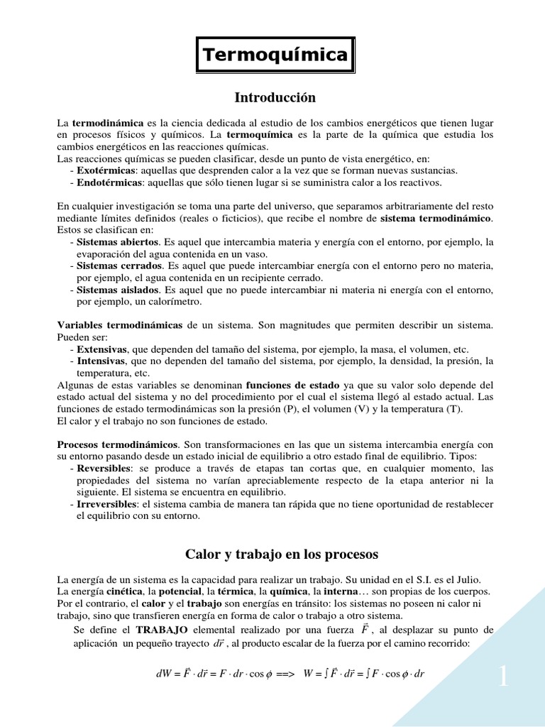 en procesos físicos y químicos. La termoquímica es la parte de la química que estudia los