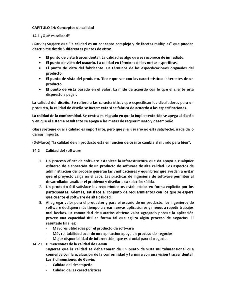 (Garvin) Sugiere que “la calidad es un concepto complejo y de facetas múltiples” que pueden