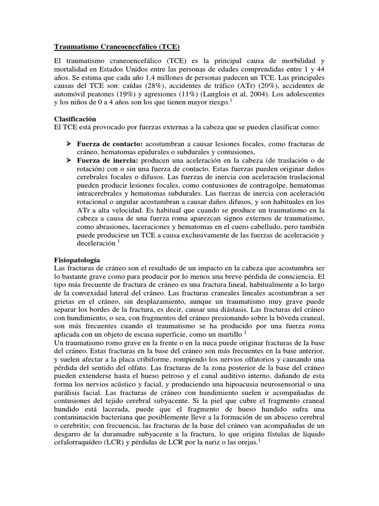 años. Se estima que cada año 1,4 millones de personas padecen un TCE. Las principales