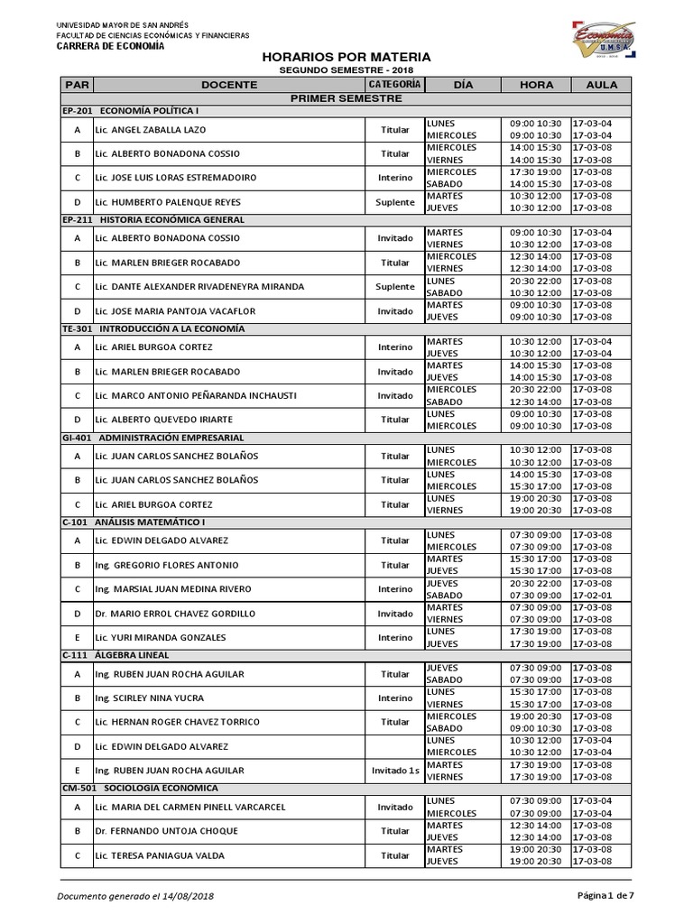 PAR DOCENTE CATEGORÍA DÍA HORA AULA