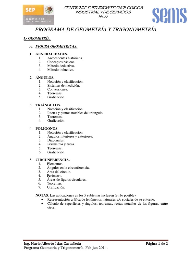 Programa Geometría y Trigonometría, Feb-jun 2014.