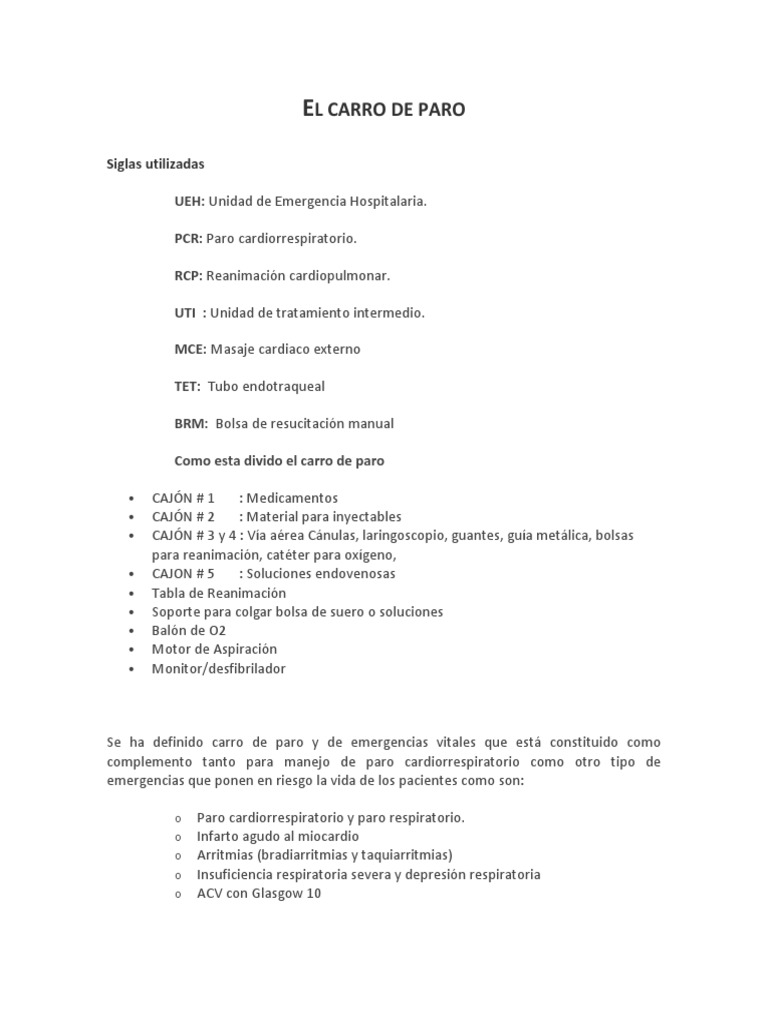 Esto es a Grandes Rasgos lo que debe poseer un adecuado carro de paros.