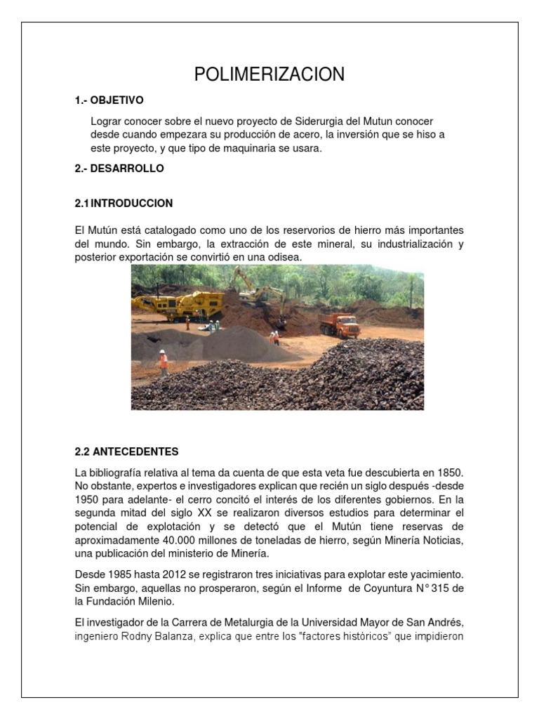 la siderurgia integral mutún, período 2015 – 2025”, sería necesario un trabajo