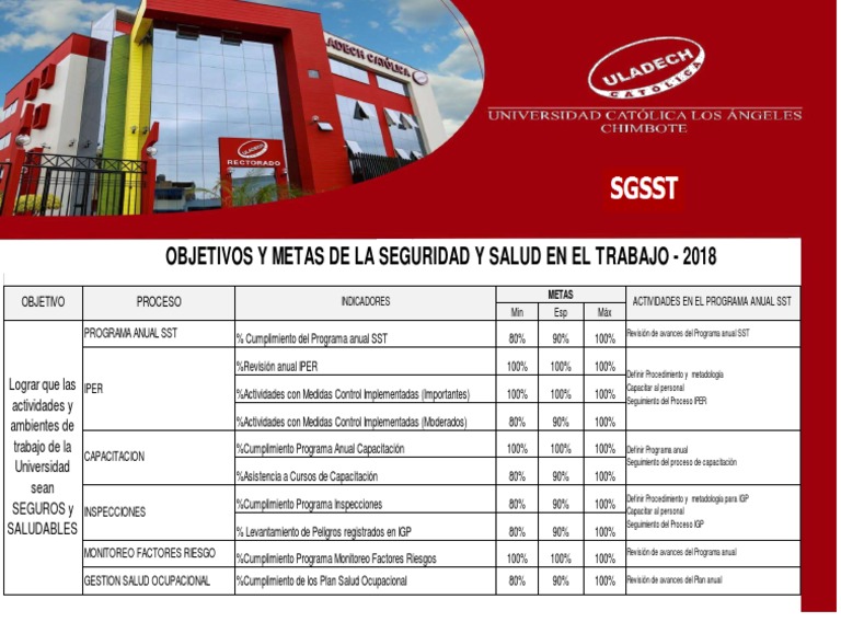 OBJETIVOS Y METAS DE LA SEGURIDAD Y SALUD EN EL TRABAJO - 2018