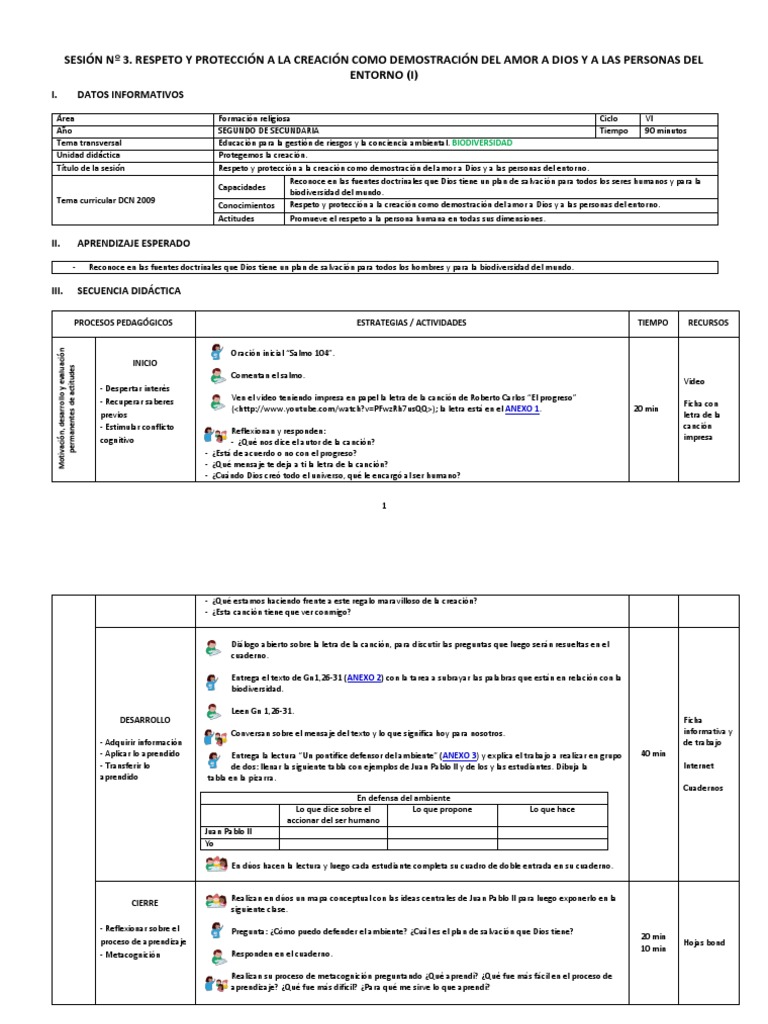 Título de la sesión Respeto y protección a la creación como demostración del amor a Dios y a las personas del entorno.