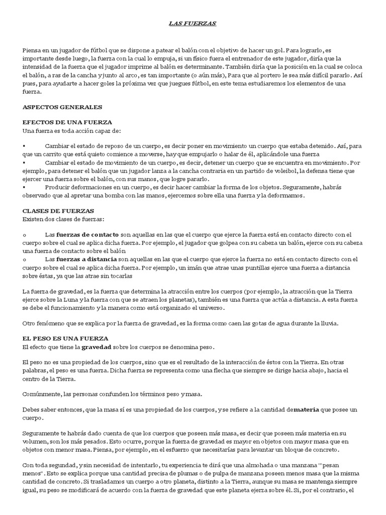 cuerpo sobre el cual se aplica dicha fuerza. Por ejemplo, el jugador que golpea con su cabeza un balón, ejerce con su cabeza