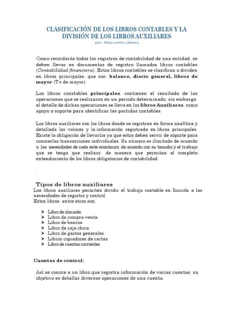 (Contabilidad financiera). Estos libros contables se clasifican o dividen