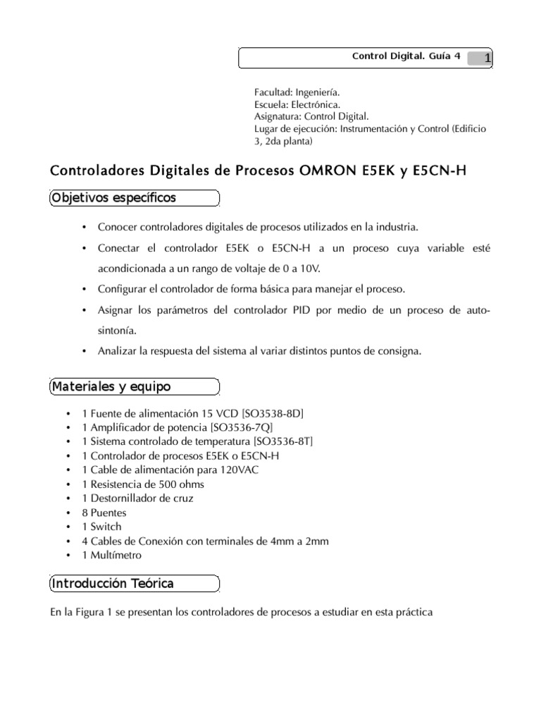 Guía 4: Controladores Digitales de Procesos OMRON E5EK y E5CN-H