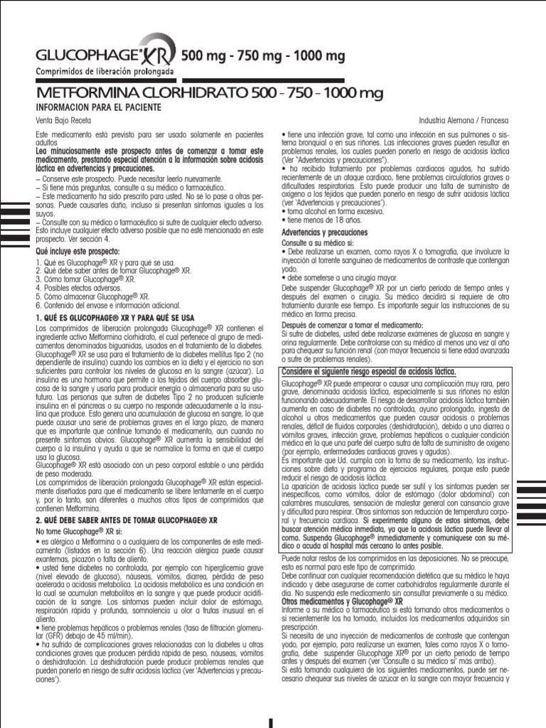 medicamento, prestando especial atención a la información sobre acidosis (Ver “Advertencias y precauciones”).