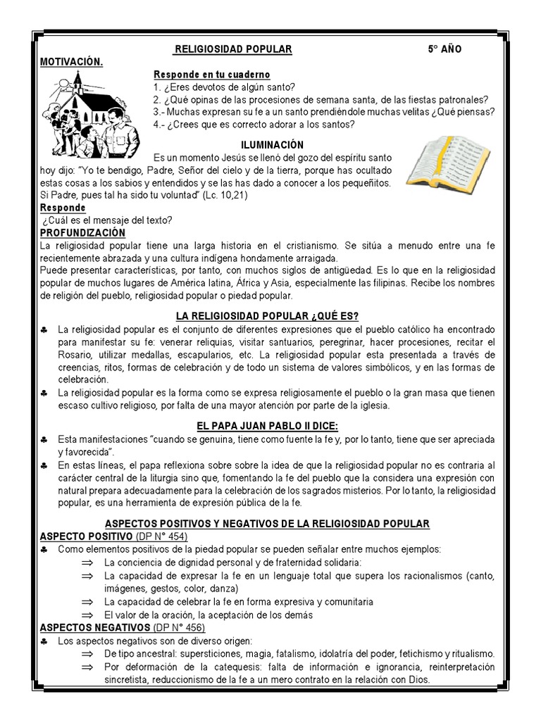 ASPECTOS POSITIVOS Y NEGATIVOS DE LA RELIGIOSIDAD POPULAR