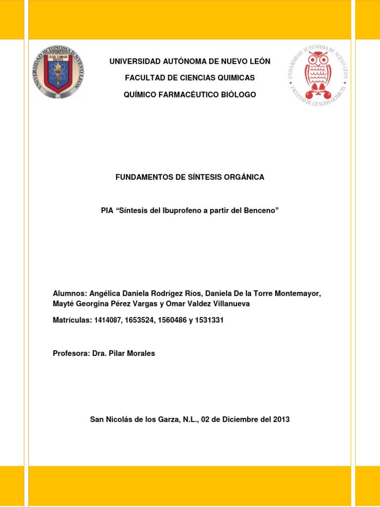 PIA “Síntesis del Ibuprofeno a partir del Benceno”