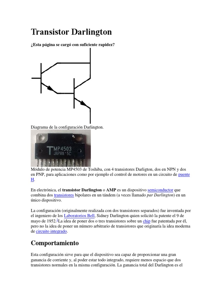 En electrónica, el transistor Darlington o AMP es un dispositivo semiconductor que