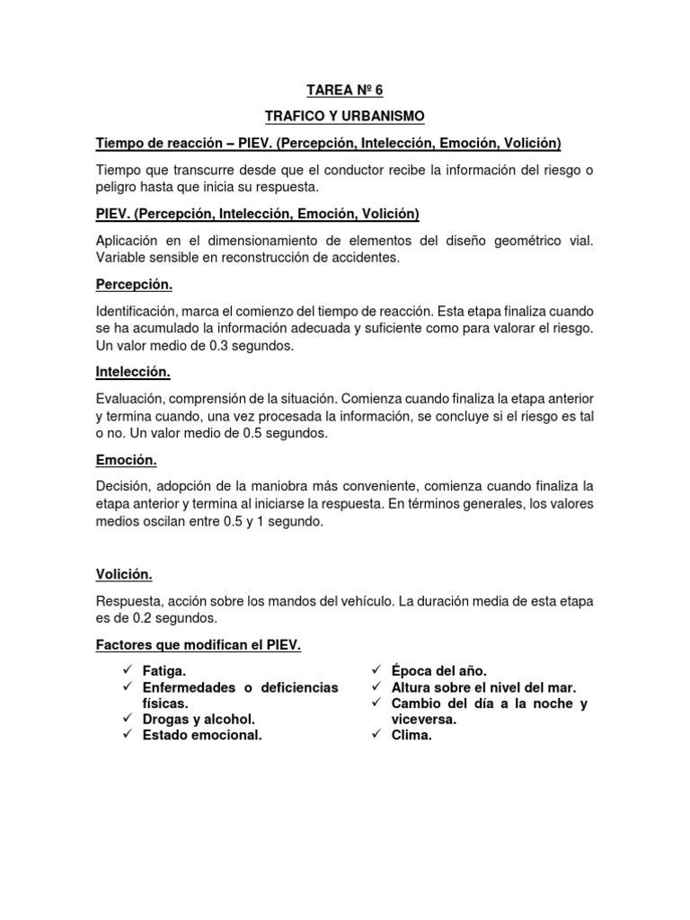 accidentológica. El Tiempo de Percepción y Reacción es aquel tiempo que