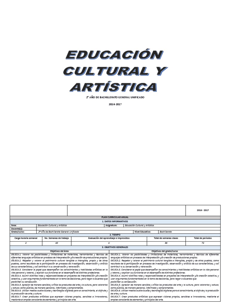 Docente: Área/asignatura: Educación Cultural y Grado/Curso: 2° Año de BGU Paralelo: