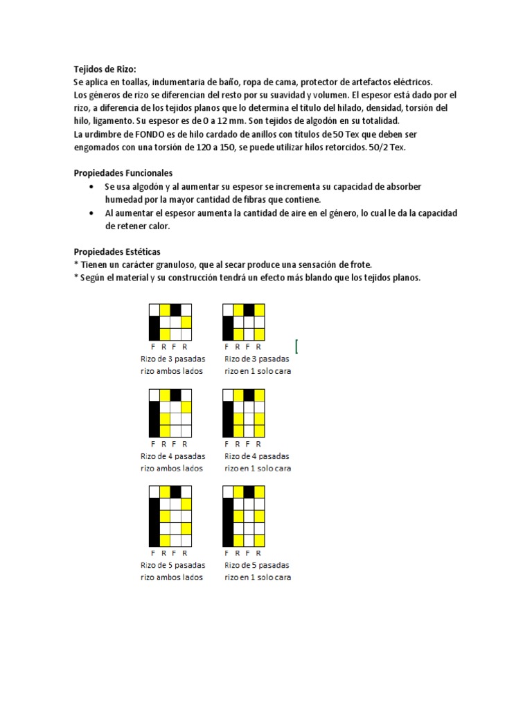 rizo, a diferencia de los tejidos planos que lo determina el título del hilado, densidad, torsión del