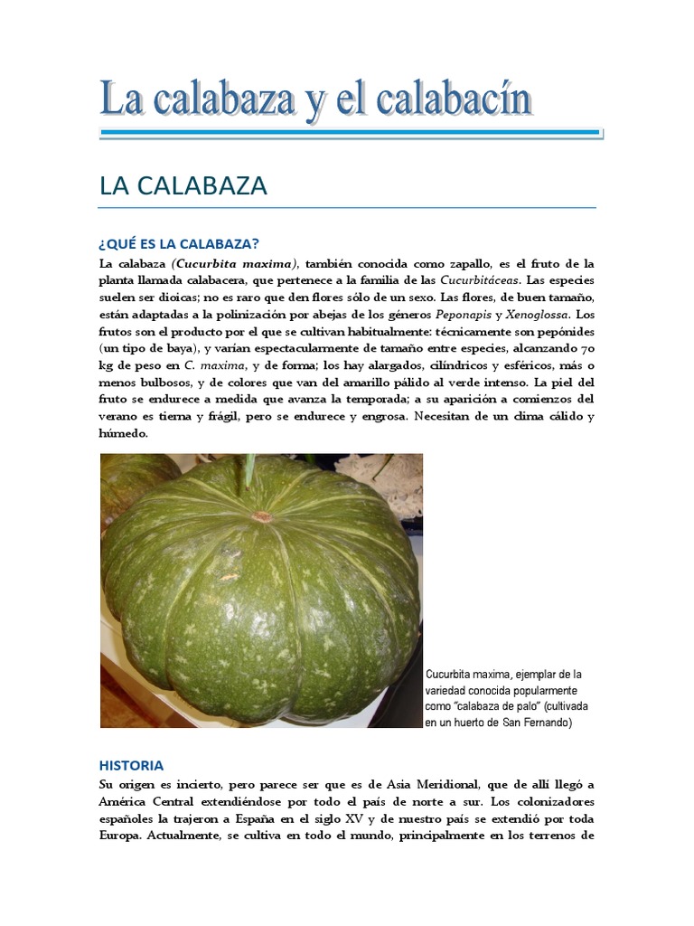 planta llamada calabacera, que pertenece a la familia de las Cucurbitáceas. Las especies