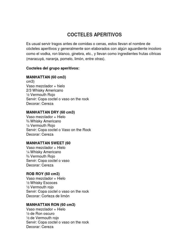 cocteles presentados también son aperitivos pero prepa rados en la coctelera