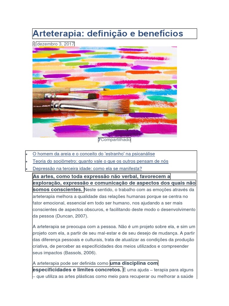 arteterapia melhora a qualidade das relações humanas porque se centra no