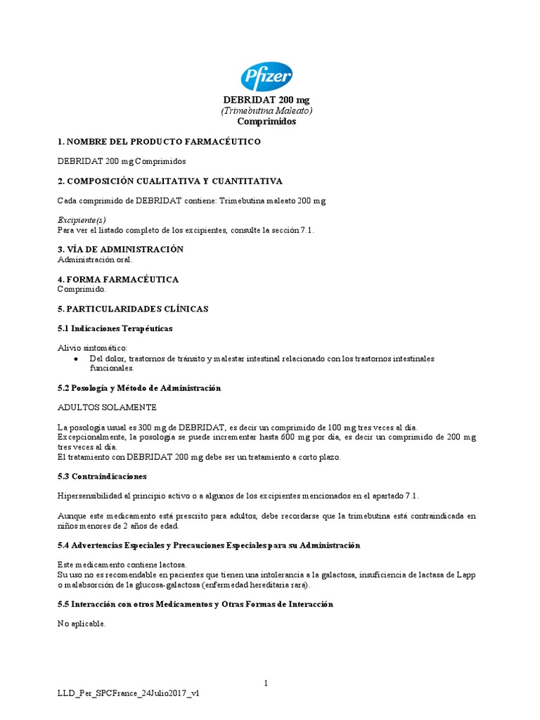 Cada comprimido de DEBRIDAT contiene: Trimebutina maleato 200 mg