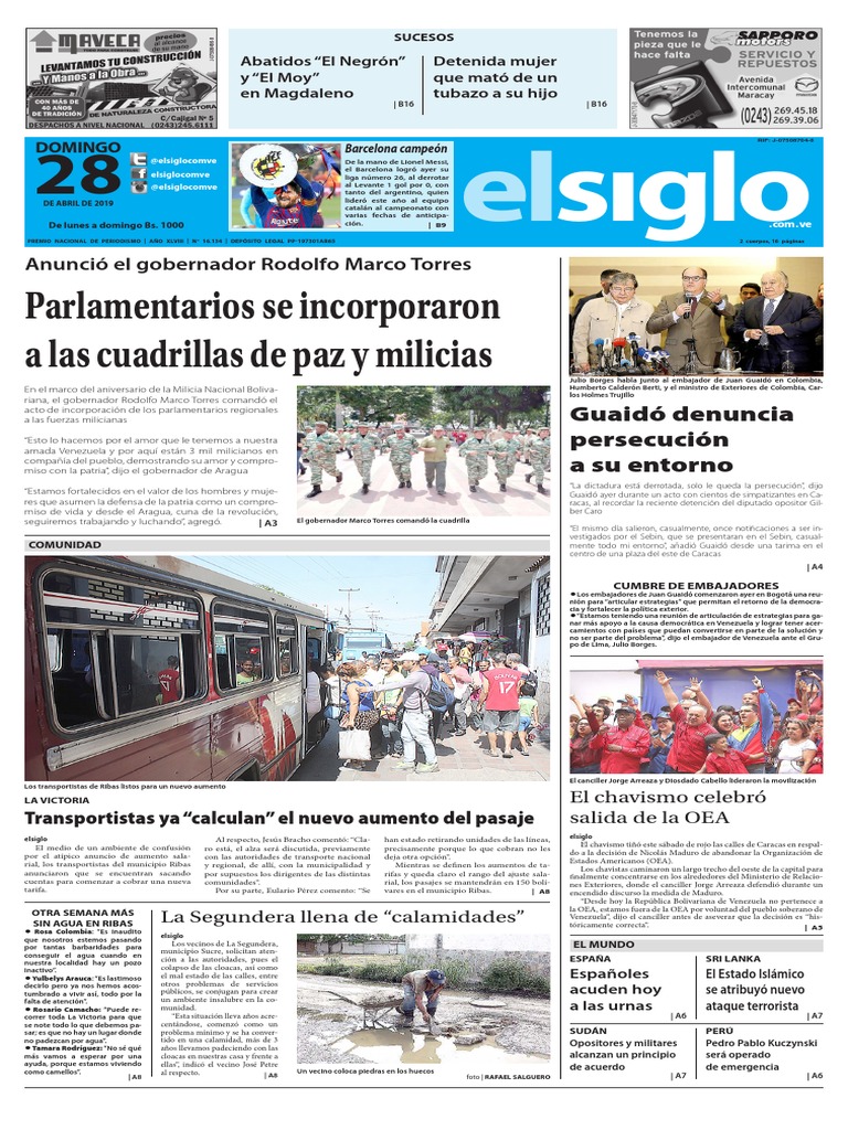 PREMIO NACIONAL DE PERIODISMO | AÑO XLVIII | N° 16.134 | DEPÓSITO LEGAL PP-197301AR65 2 cuerpos, 16 páginas