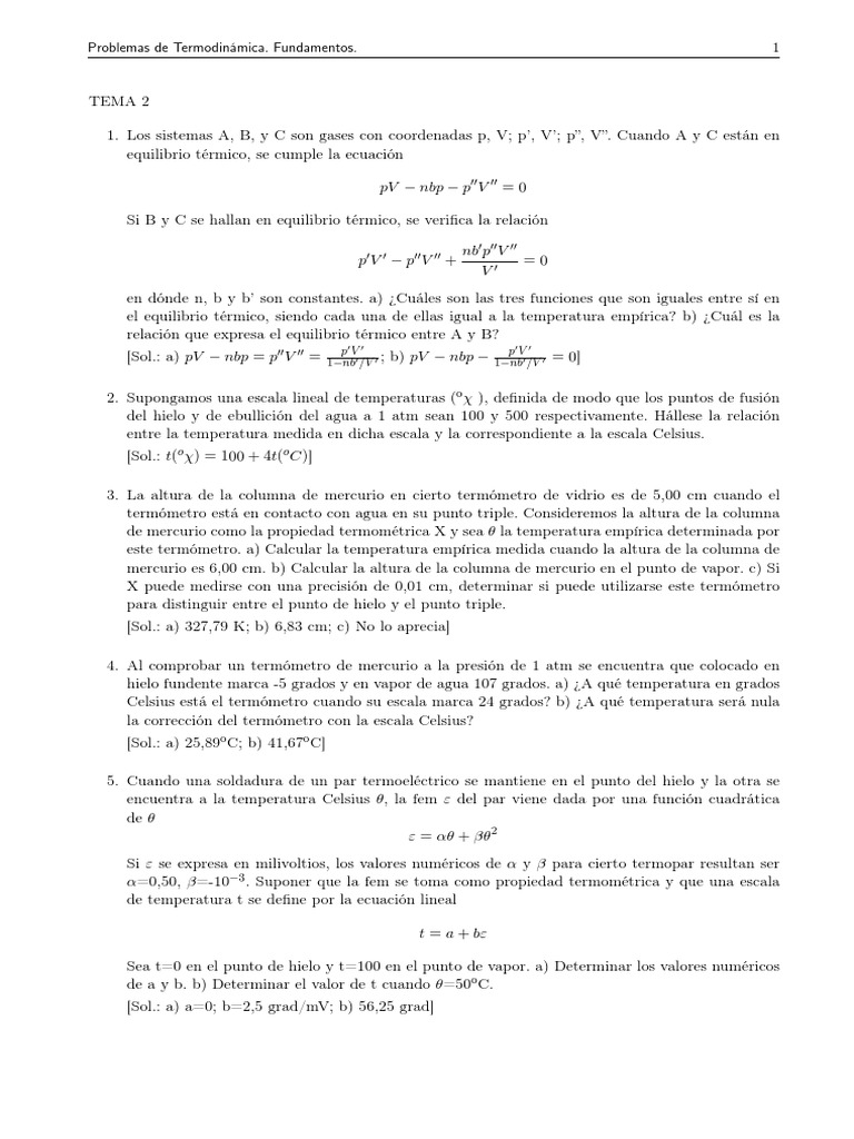 1. Los sistemas A, B, y C son gases con coordenadas p, V; p’, V’; p”, V”. Cuando A y C están en