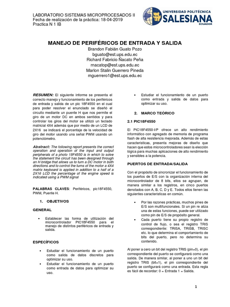 PALABRAS CLAVES: Periféricos, pic18F4550, denotados con A, B, C, D y E. Todos ellos tienen las