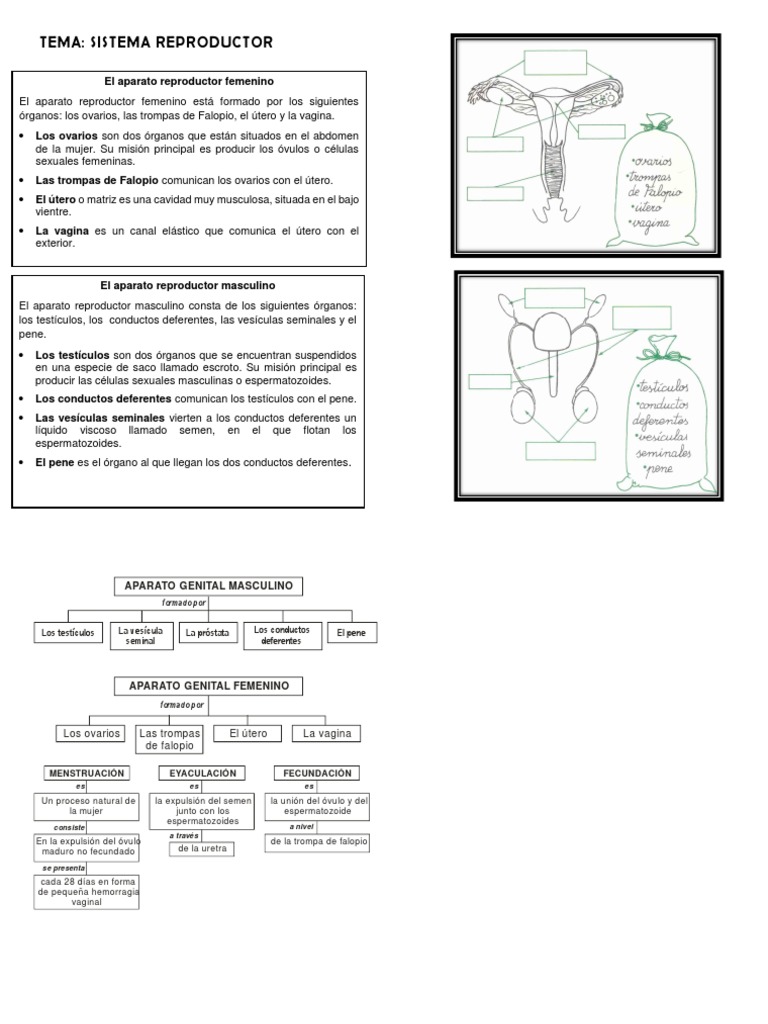 ¿Cómo está formado el aparato reproductor masculino? Dibujar ¿Cuáles son los órganos que forman el aparato reproductor femenino?